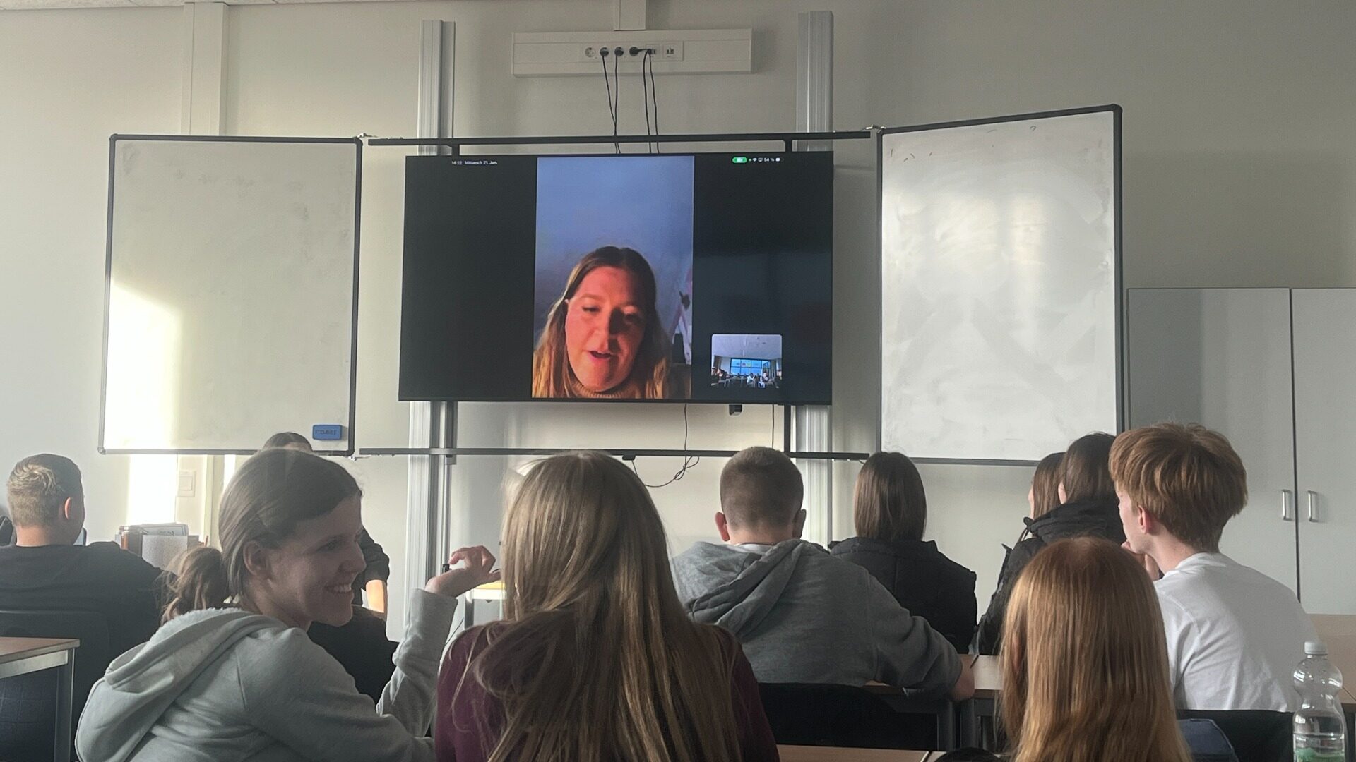 Der 10. Jahrgang der Gesamtschule Aspe nutzt die Vorteile der Digitalität: Statt sich mit Büchern über das Leben, die Kultur und die Geschichte Kanadas zu informieren, fand ein Videocall mit Vivi aus Montreal statt. Zum Abschluss des Themas „Canada“ hatten sie die Gelegenheit, an einer Videokonferenz mit einer Kanadierin teilzunehmen: Vivian Cottle aus Montreal war vor einigen Jahren selbst als Schülerin für ein Jahr in Deutschland und freute sich, nun die Fragen der Zehntklässler:innen zu beantworten. Die Schüler:innen konnten eigene Fragen stellen und ihr Englisch aktiv anwenden.