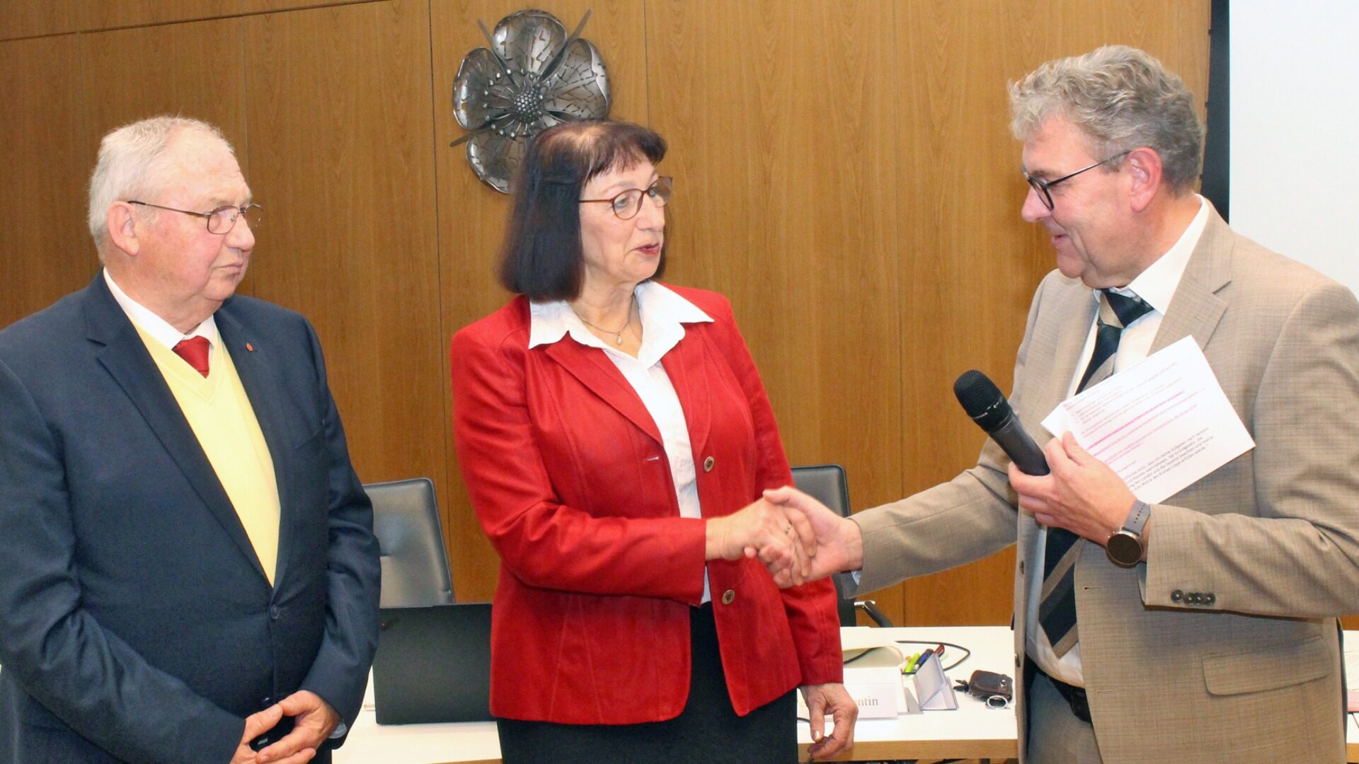 Danach nahm er Meinolf Haase den Amtseid ab. Mit einer Enthaltung und acht Gegenstimmen wurden danach in geheimer Abstimmung die beiden Stellvertreter gewählt. Das sind als 1. Stellvertreterin Birgit Tornau (CDU) und als 2. Stellvertreter Kurt Kalkreuter(SPD). Nachdem die Kreistagsmitglieder vereidigt und die Ausschüsse festgelegt wurden, es keine weiteren Tagesordnungspunkte gab, endete die 1. Sitzung des neuen Kreistages schon nach 45 Minuten.