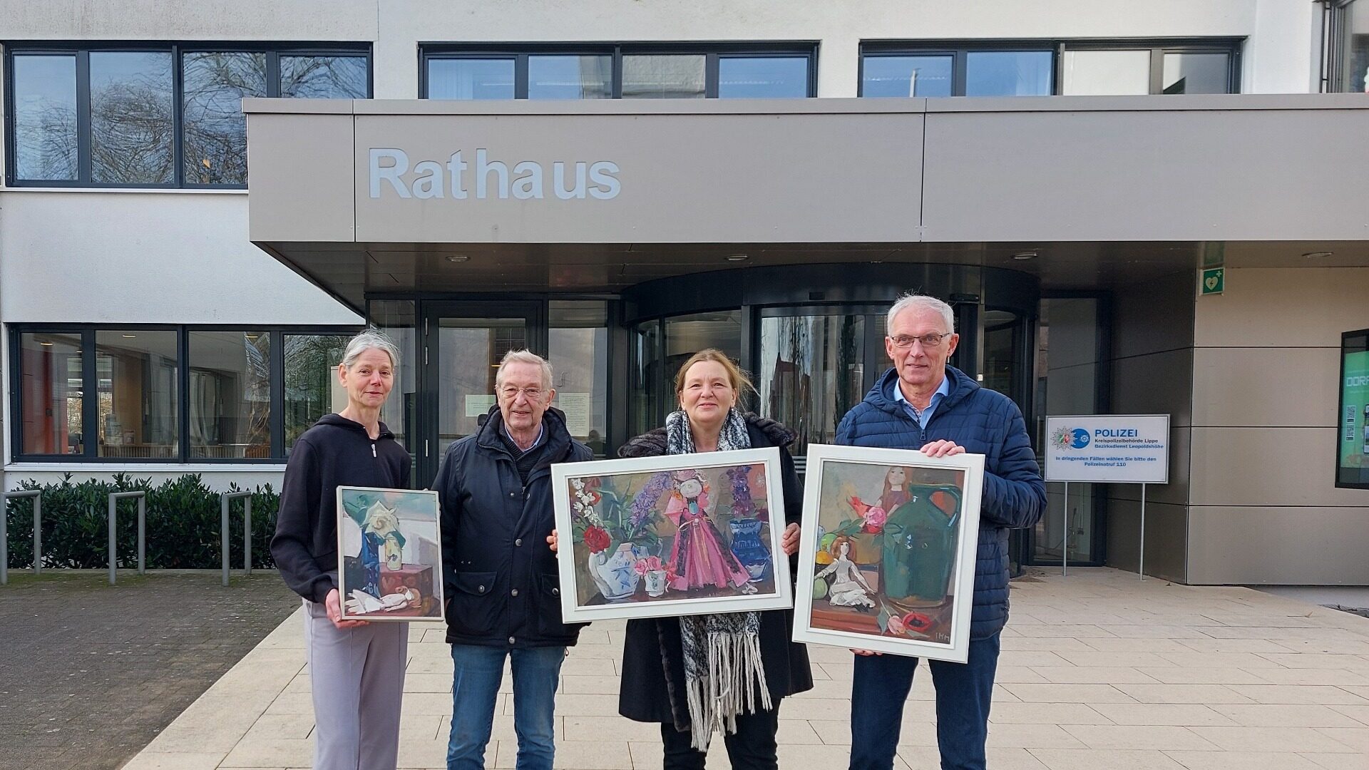 Leopoldshöhe. Am Donnerstag (18.12.2025) erhielt die Gemeinde Leopoldshöhe ein überraschendes Geschenk: Knut Tinius aus dem Wendland übergab der Gemeinde drei Bilder von Ilse Häfner-Mode. Die Künstlerin war eine enge Freundin seiner Schwiegermutter Dr. Meta Patas (1914-1993), die von 1958 bis 1975 als erste Frau das Stadtgeschichtliche Museum Düsseldorf leitete. Tinius wurde von der Kämmerin Almuth Mäscher, Bernd Hoffmann (stellv. Vorstand Heimatverein Leopoldshöhe) und der Gleichstellungsbeauftragten Grita Behrens begrüßt.