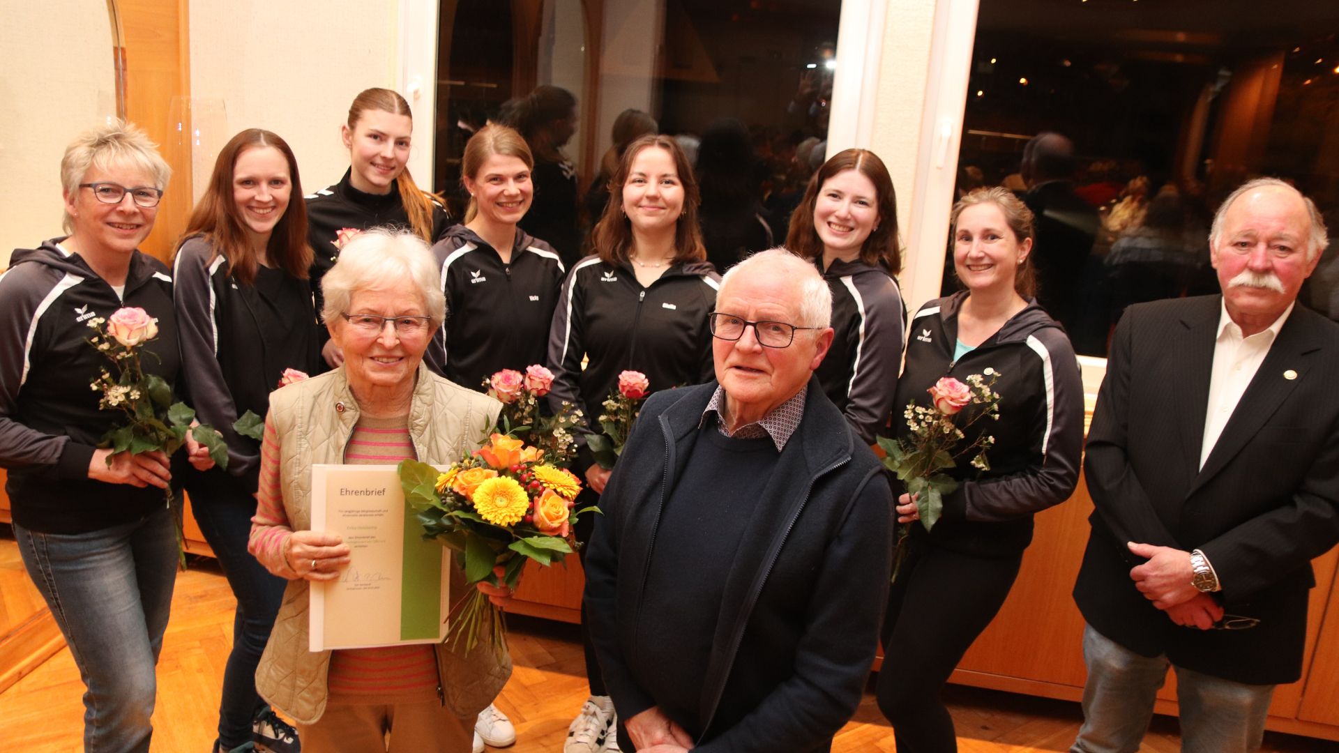 Für ihre hervorragende Arbeit ehrte der Verein die Übungsleiterinnen der Jazztanzgruppen. Mit ihren Vorführungen in den Jahren 2023 und 2025 boten sie beste Unterhaltung. Gewürdigt wurden Lisa Rösner, Giulia Schwien, Hanja Klaws, Derya Topselvi, Petra Baehr, Stella Molck, Katharina Krüger und Vicky Gagelmann. Ein Dank für seine Einsatzbereitschaft in der Ju-Jutsu-Abteilung ging auch an Oliver Fründt. Über TSV-Ehrenbriefe durften sich Erika und Rolf Holzkamp freuen, die seit ewigen Zeiten im TSV verwurzelt sind und in vielen Funktionen und Abteilungen ehrenamtlich tätig waren und noch sind.