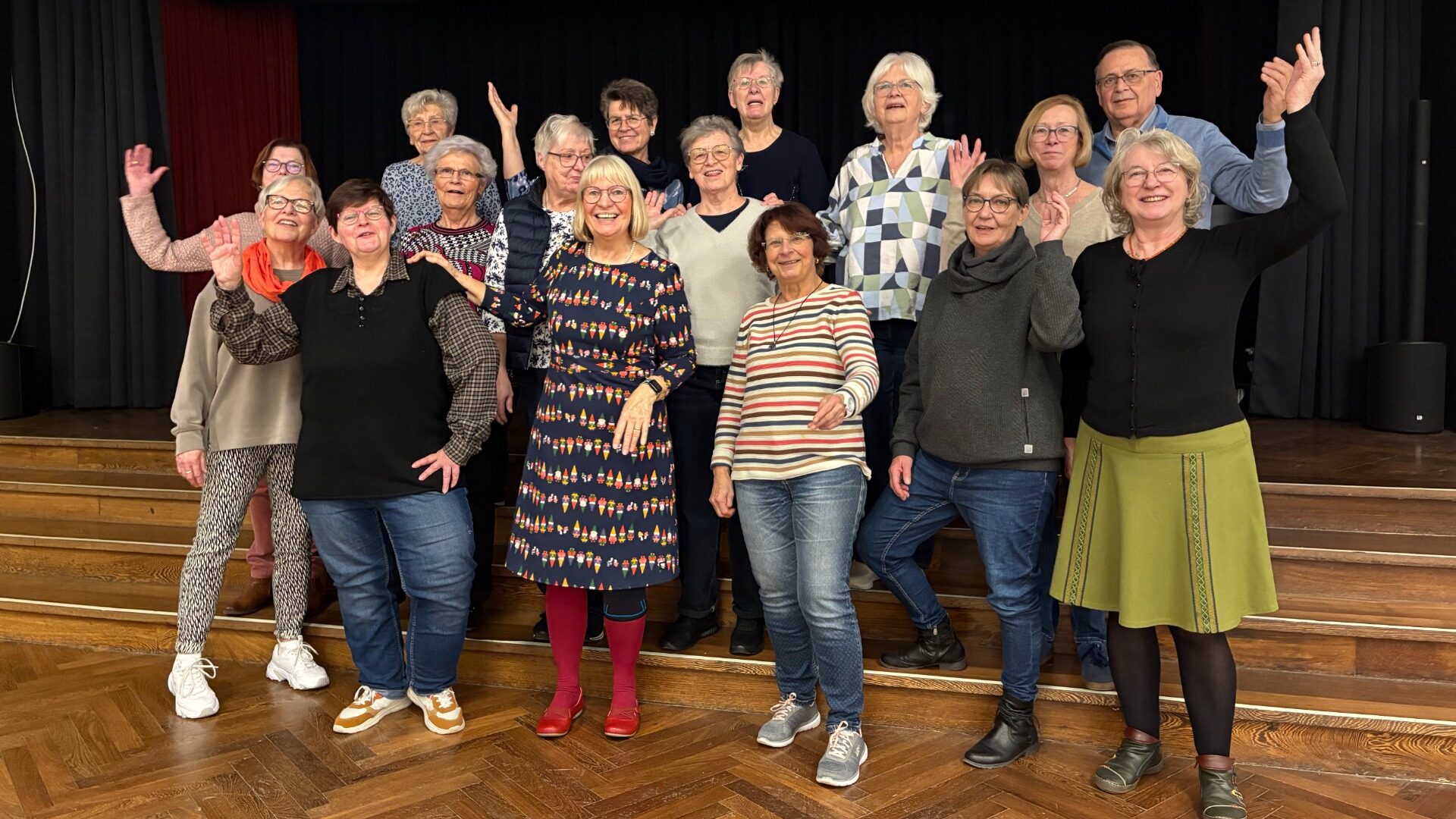 Von Beginn an prägte eine ungezwungene und lockere Atmosphäre die Treffen. Mittlerweile hat sich der Kreis der Tänzerinnen erweitert, und die Gruppe freut sich besonders über männliche Verstärkung. Das Repertoire ist so bunt wie die Gruppe selbst: Unter der Leitung von Petra Rosenow werden Tänze aus aller Welt, Paarmixer, Rounds, Linedance zu Oldies sowie Squares und Kontras getanzt. Dabei steht nicht die Perfektion, sondern das gemeinsame Erlebnis im Mittelpunkt – Lachen ist ausdrücklich erwünscht, wenn ein Schritt einmal nicht auf Anhieb sitzt.