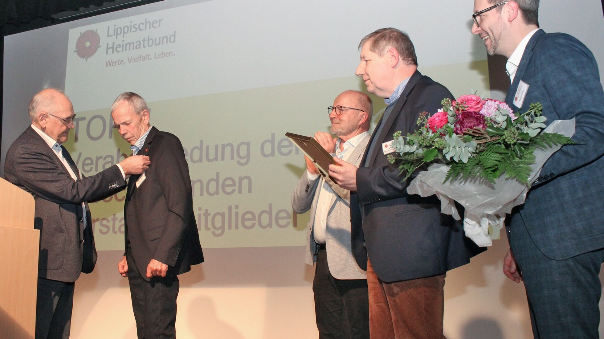 Willi Schirrmacher übernahm dann den Part der Laudatio für den scheidenden Vorsitzenden. Dr. Hüser habe den Verein mit Hingabe und Klarheit neun Jahre geführt, sagte er. Sein besonderes Anliegen seien immer die Kinder und Jugendlichen gewesen, die es zu gewinnen galt. „Sie haben die Menschen zusammen gebracht und den Heimatbund gestärkt“, meinte der stellvertretende Vorsitzende und verlieh dem Scheidenden die Goldende Rose des LHB sowie die Ehrenmitgliedschaft.