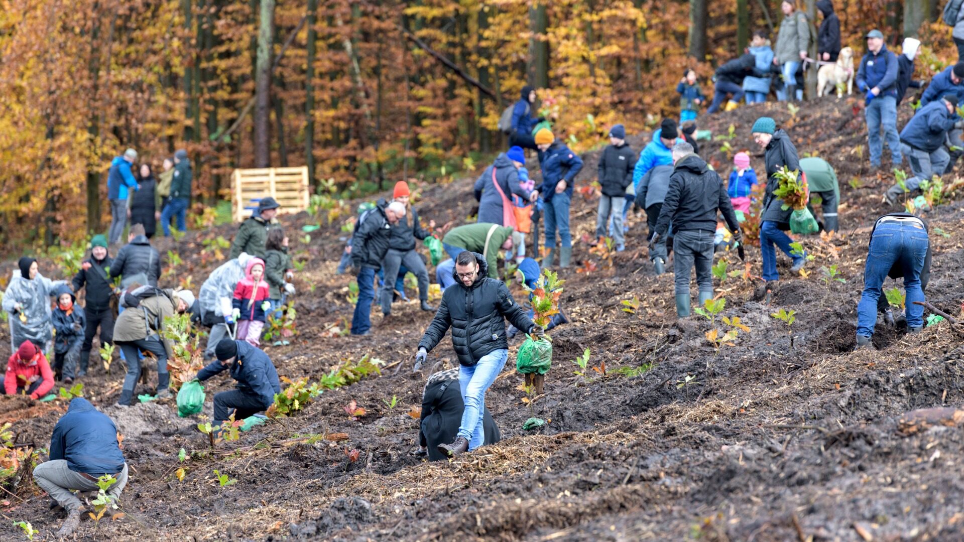CROSS GERMANY mit interessierten Aktiven aus Zivilgesellschaft und Privatwirtschaft 4.000 Bäume. Mit der fachlichen Unterstützung der Forstverwaltung Spiegelsberge wird ein junger Mischwald aus Traubeneiche, Winterlinde, Bergahorn und Vogelkirsche im Bielefelder Wald unterhalb des Eisernen Antons, oberhalb der Selhausenstraße in Bielefeld Stieghorst/Hillegossen gepflanzt.