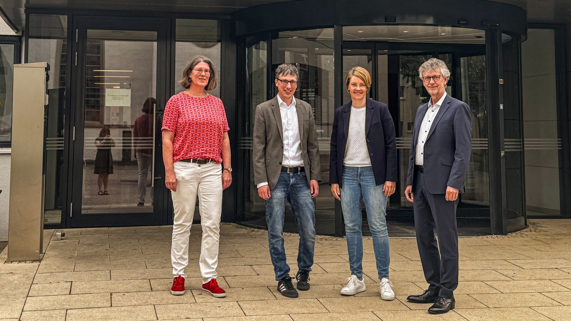 Fachbereichsleitung Andrea Rodekamp (links), Bürgermeister Martin Hoffmann, Projektmanagerin MED OWL Dr. Charlotte Șahin und Uwe Borchers (Gschf. MED OWL). Foto: Gemeinde Leopoldshöhe