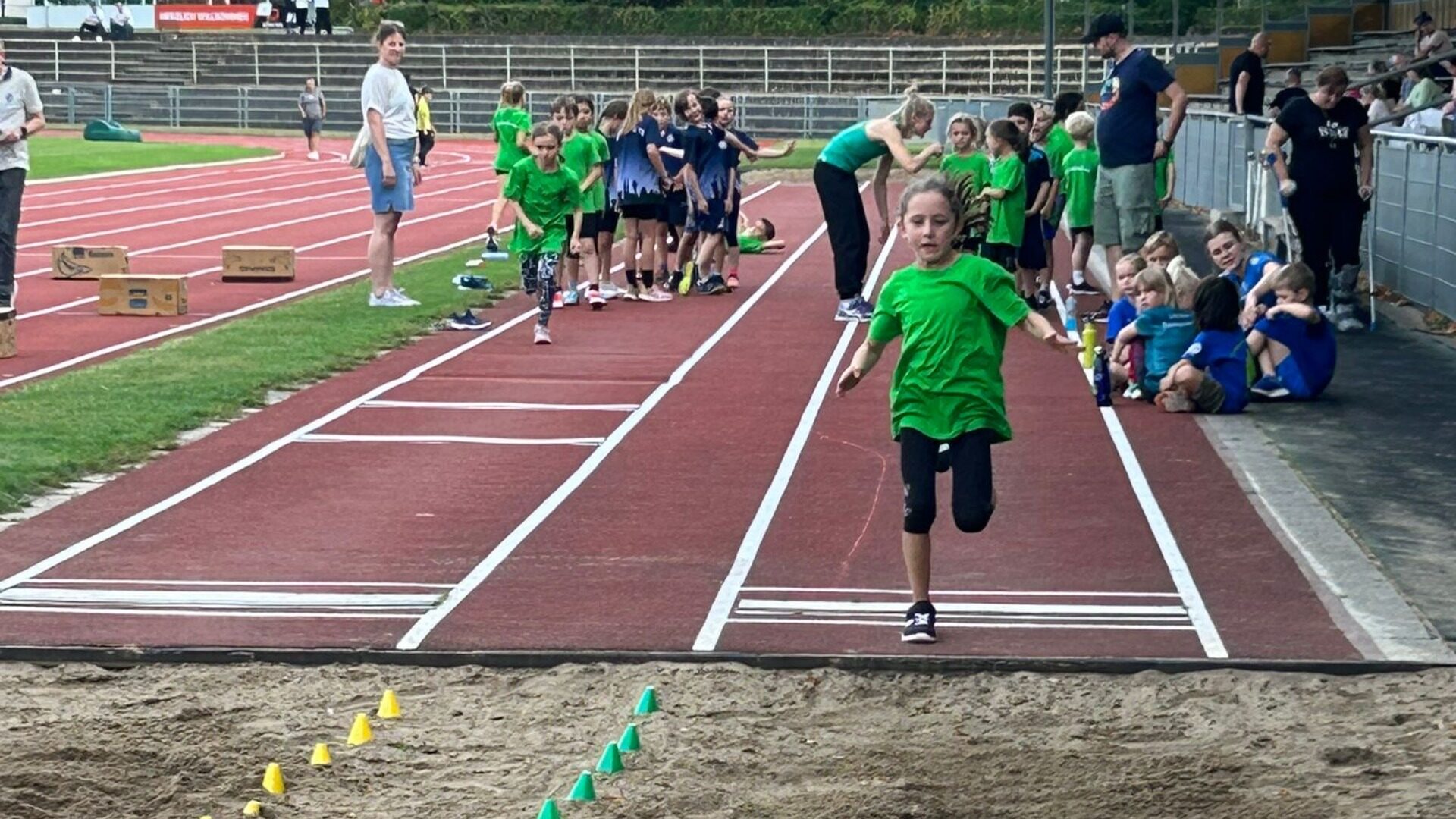 eine Hindernissprint-Staffel ca. 40 m lang über z. B. Bananenkartons in einem Abstand von jeweils 5 m. Die schnellste Zeit wird gewertet. Eine 6 x 200 m Staffel – Es werden drei Runden gelaufen. Alle 200 m wird der Staffelstab übergeben. Es nehmen Sechs Kinder aus einer Mannschaft an dieser Staffel teil. Zonenweitsprung – Jedes Kind hat drei Versuche, die zwei besten Ergebnisse kommen in die Wertung