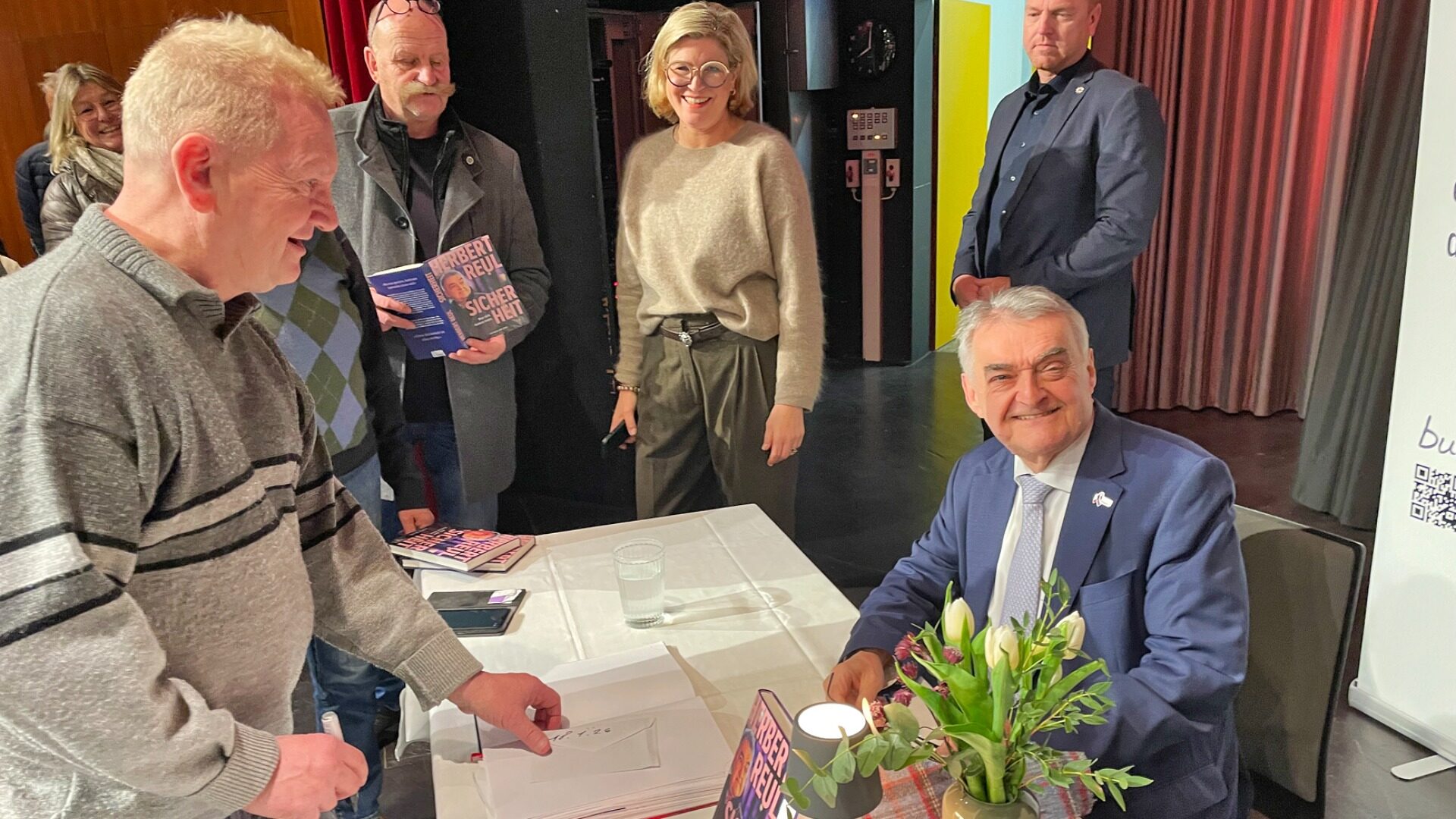 Mit viel Applaus und einer schier endlosen Schlange an Menschen die sich sein Buch signieren lassen wollten, endete der Abend mit einem Politiker, dem man abnimmt was er sagt, weil er sagt, was er meint und tut. Im Übrigen verzichtete der NRW-Innenminister Herbert Reul auf sein Honorar, das er der Polizeistiftung NRW zur Verfügung stellte.