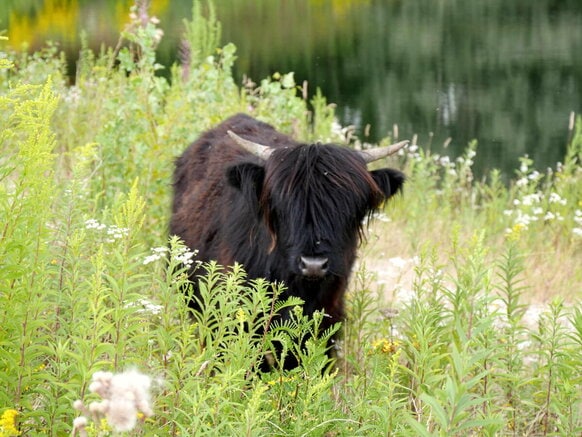 In Lage-Müssen sind Hochlandrinder und Wasserbüffel eingezogen. Sie halten Fläche und Gewässer offen. Foto: © Kreis Lippe