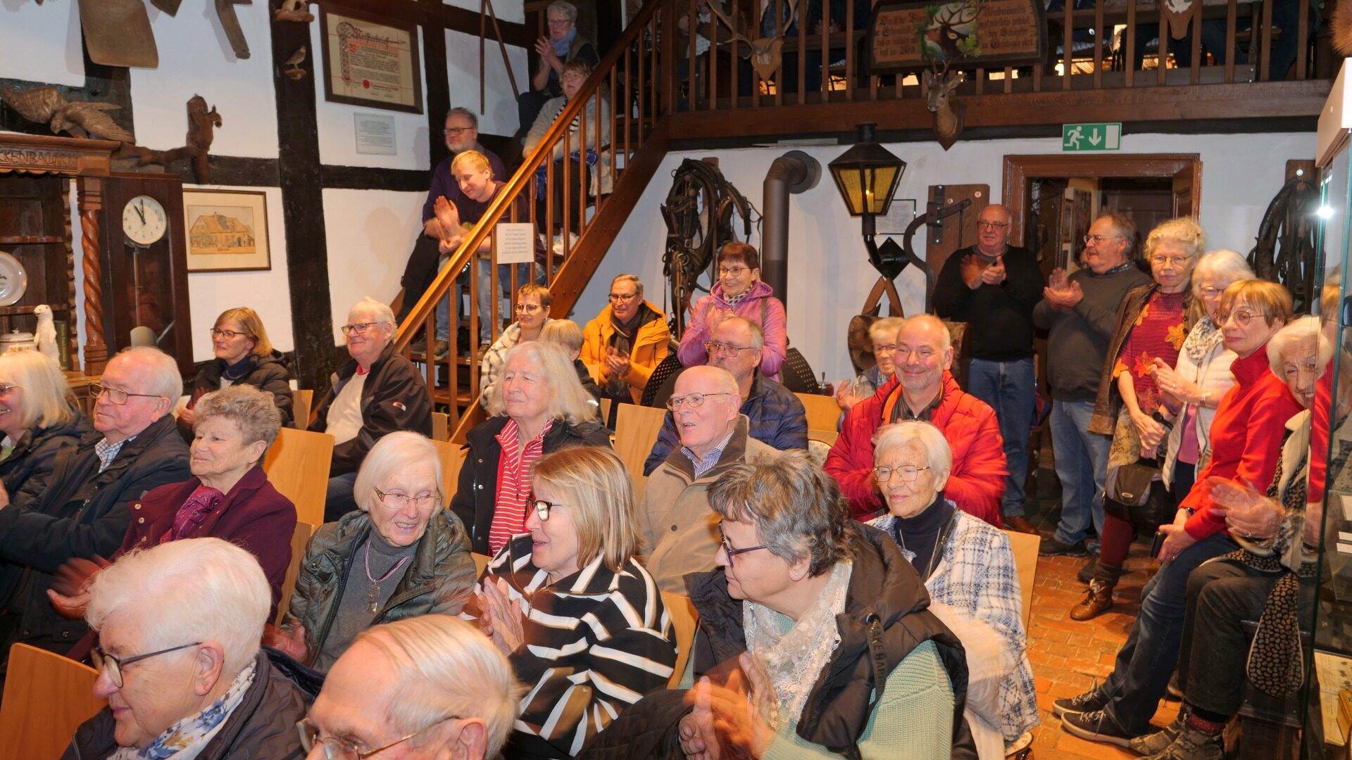 Der Heimatverein Leopoldshöhe feierte einen glanzvollen Jahresabschluss mit einem ausverkauften Haus: Das Saxofon-Duett Britta Holwitt und Tiko Hölz begeisterte am Donnerstagabend das Publikum im Heimatmuseum. Schon vor Konzertbeginn um 19.00 Uhr herrschte im gemütlichen Backhaus eine lebhafte Vorfreude, als Ehrenamtliche des Vereins die zahlreichen Besucher mit Getränken und Snacks empfingen. Das Museum war rappelvoll, selbst Empore und Treppen waren besetzt – ein deutliches Zeichen für das große Interesse.